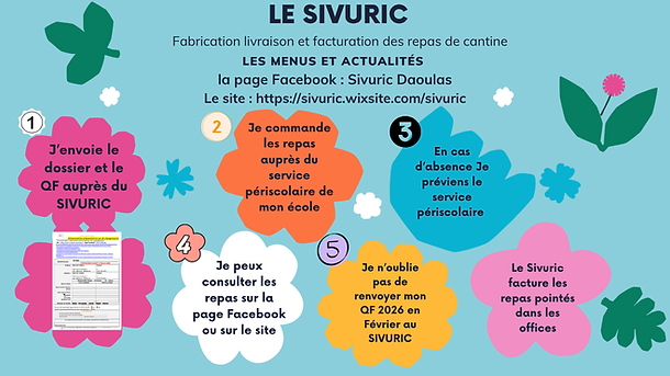 Le SIVURIC prépare et livre environ 960 repas scolaires par jour, en liaison froide pour les écoles, les crèches et centres de loisirs des 6 communes adhérentes : Daoulas, Dirinon, L'Hôpital-Camfrout, Logonna-Daoulas, Loperhet et Saint-Urbain.